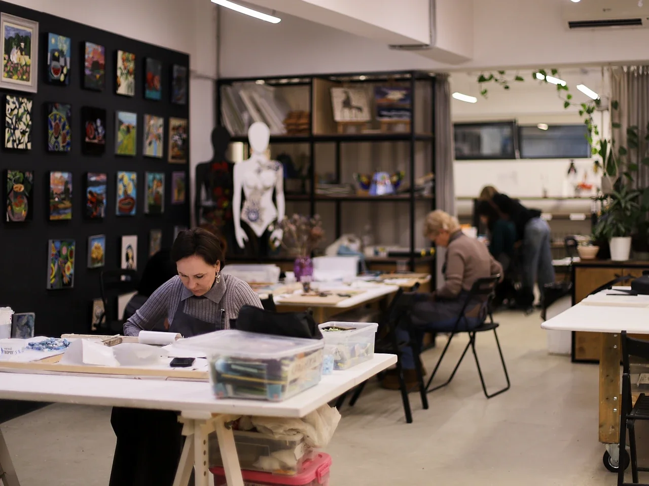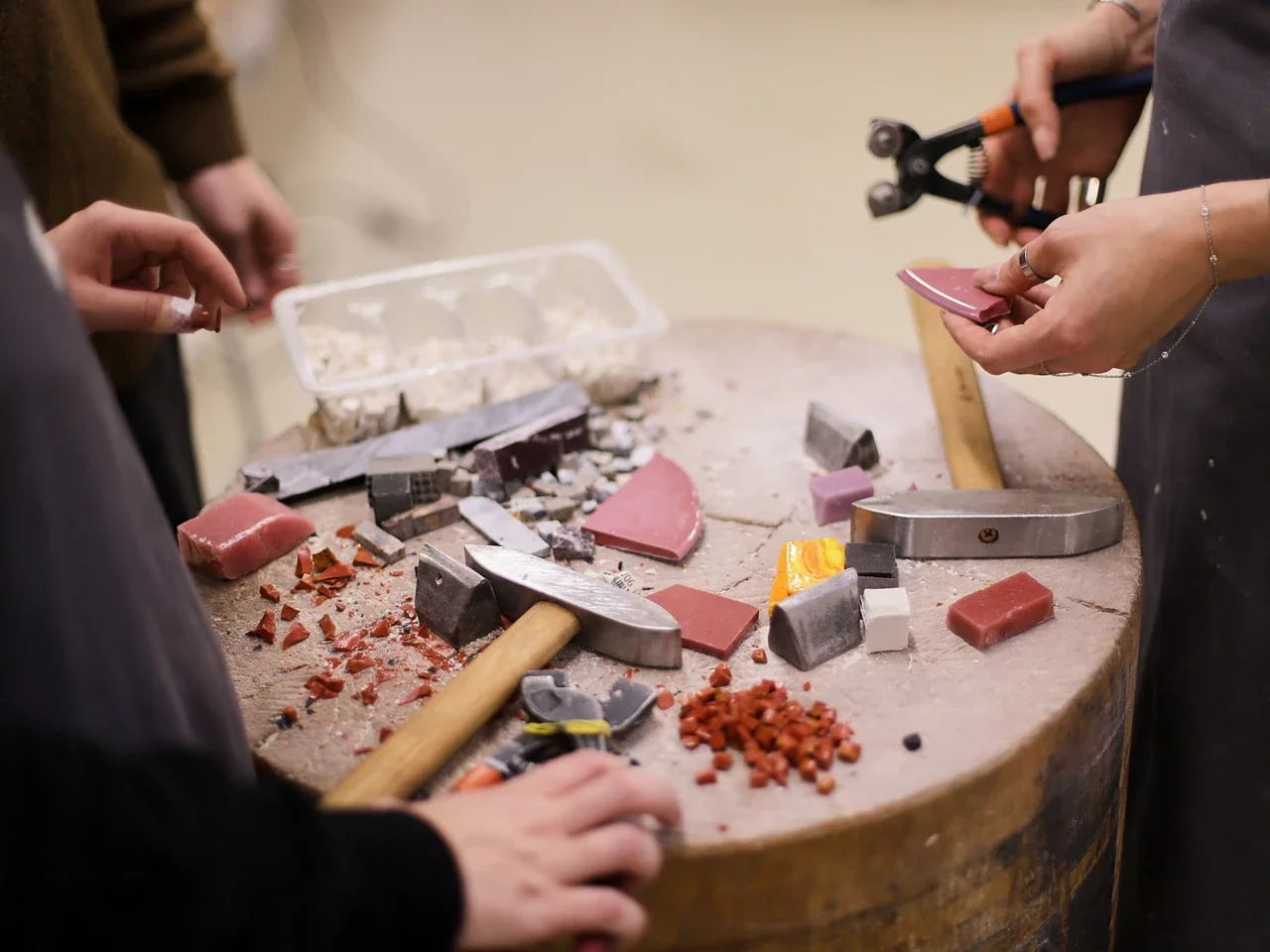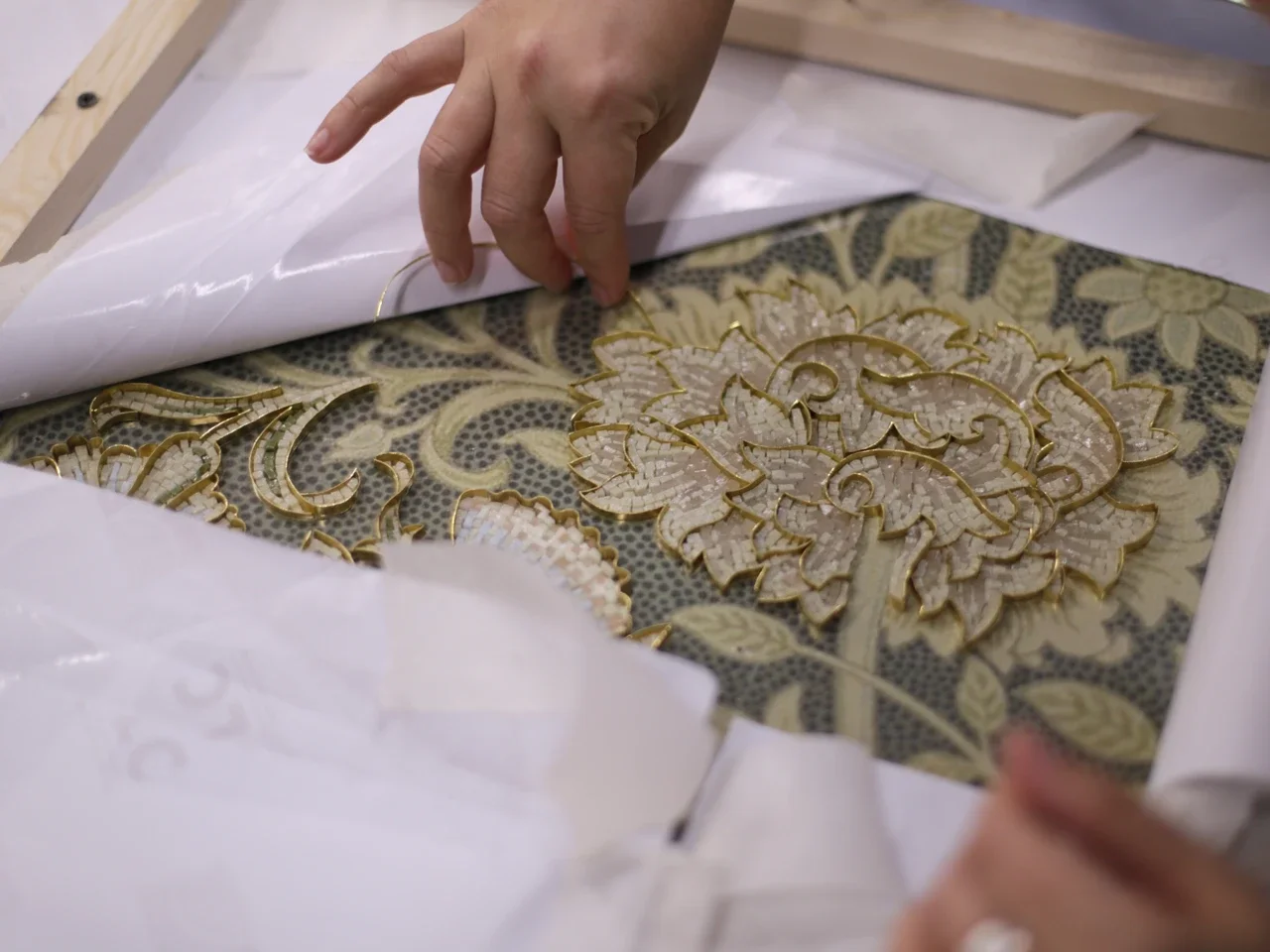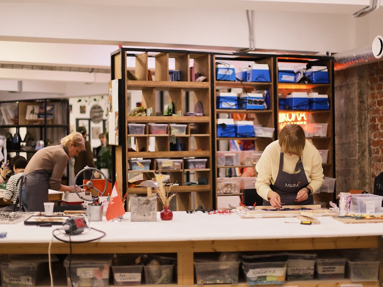 В этот раз разговор будет особенно предметным — ведь мы соберемся в мастерской «Московской школе мозаики» на территории Хлебозавода 9. Это место, где можно увидеть и потрогать инструменты и материалы — стекло, смальту и камень. Ну и, конечно, посмотреть на результат работы как студентов, так и опытных мастеров.