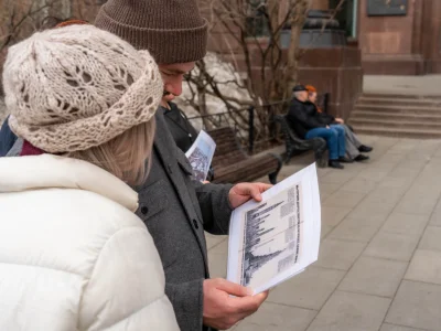 Вы узнаете нашего гида по белой табличке с надписью «Москва глазами инженера».