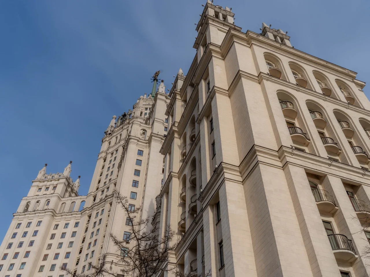 В начале 1950-х сталинские высотки строили с использованием новейших технологий, которые позволили создать один из первых жилых комплексов с гаражом, спортивной площадкой, магазинами, отделением почты и сберегательной кассы, а также собственным кинотеатром.